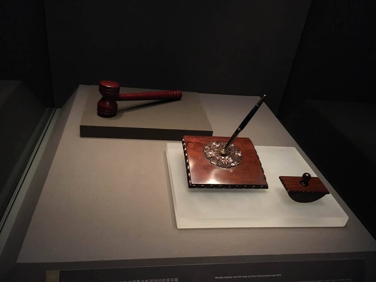 为了体现巡展地与展览本身更强的互动性和契合度,该展览的策展方式也颇为新颖▲□,即在每个巡展地区,合作举办方都要为这部世界史增添一件能够代表社会当下进程的物品◇◇,这也就是展览现场的-“第101件(套)展品”,它将展览的触角由过去、现在延伸至对将来的思考。而此次在中国展出▷,中国国家博物馆也照例挑选了一套具有特殊意义的展品——“2001年宣布中国重返世贸组织(WTO)的木槌和中国重返世贸组织的签字笔”,这在体现中国时代特征的同时,也在回应着展览的主旨即“全球化是人类内在需求☆”。