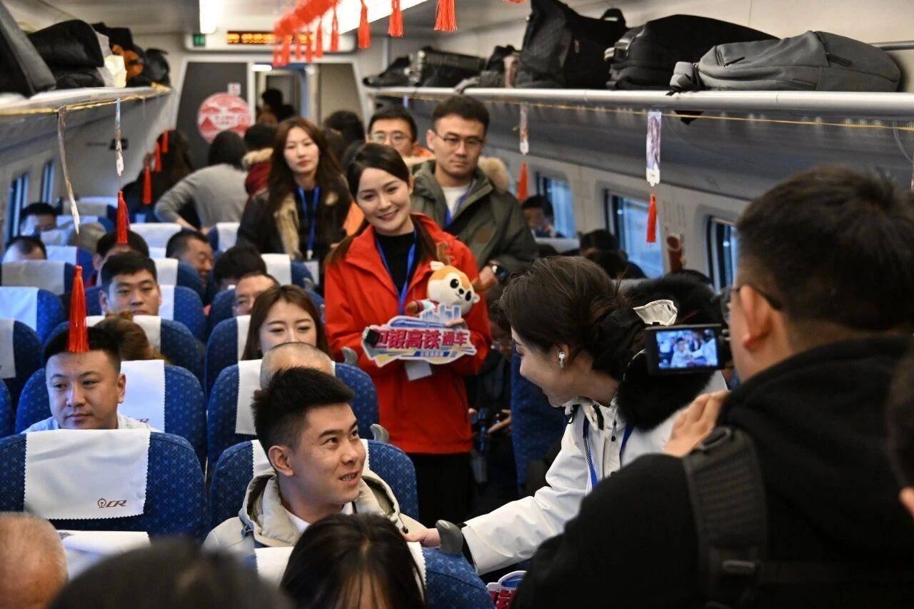 候车室内,精彩的文艺节目为这场奔赴增添了一份别样的仪式感。旅客们争相领取首发纪念车票•◇◇,参与趣味问答•▷-,还在花样打卡点前驻足,手举“我是首发见证者”等标语•,将笑颜与期待一并定格。