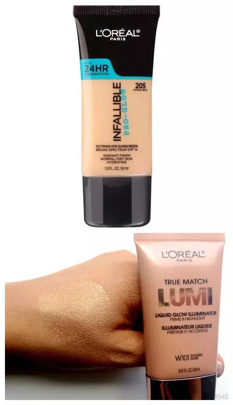 碧昂斯的金色皮肤就是靠这两种底妆品混合而来▷,一只持久性的粉底加上有金色光泽的提亮乳☆=,就能初步打造雅典娜的金色光泽肌~