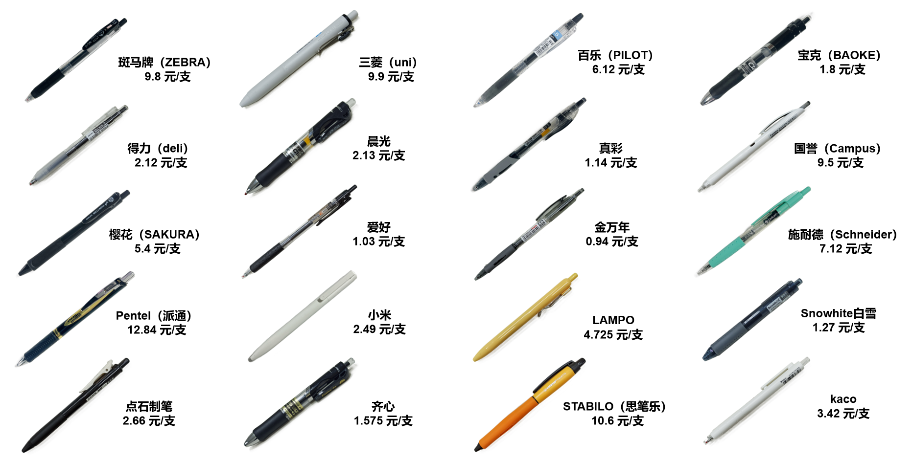 本次比较试验的20款中性笔样品•,其中12款国内品牌样品的平均价格2■=.11元/支□;8款国外品牌样品的平均价格8.91元/支•。