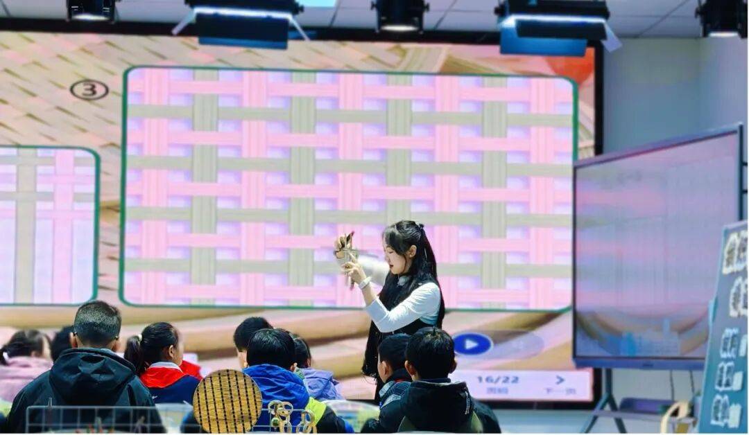 钟莉老师引领学生体验非遗竹编的匠心传承,围绕非遗竹编展开○★▽。通过竹的用途与文化意象创设“非遗传承人★”情境○••,借视频学习竹编历史▲•、工序及匠人精神,结合任务单感知竹特性;引导学生赏析竹编形式美(造型/纹样规律)…☆,掌握□=▼“十字编”技法(挑一压一)◁★,小组合作创作◆;最后以■★“知道·会做·理解▼”展评延伸编织类型,升华工匠精神,落实传统工艺学习目标。