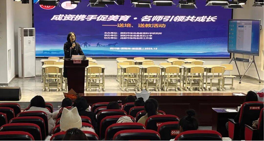 为深入贯彻教育部《关于全面实施学校美育浸润行动的通知》精神•●,推动优质美育资源跨区域流动共享,充分发挥名师工作室的示范▲、引领与辐射作用,2025年12月23日,由资阳市安岳县教育科学研究所主办、安岳县岳石小学承办、成都市张梅名师工作室协办的“名师送教•▪•”活动——“成资携手促美育·名师引领共成长”美术教师培训,在安岳县岳石小学圆满落幕▪。本次活动在领衔人的精心策划与统筹引领下,汇聚了工作室骨干团队的精粹力量,与安岳县各中小学美术教师代表齐聚一堂△,以美为媒,共探美育新路径,共促专业新提升。