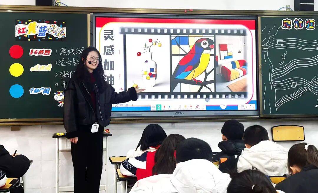 何婧老师聚焦三原色基础知识○■。孩子们通过赏析蒙德里安的代表作•▽▪,直观理解红黄蓝的构成美感,并运用三原色自主设计作品。本课将大师艺术与个人创作相结合,有效提升了学生的色彩感知与构成能力。