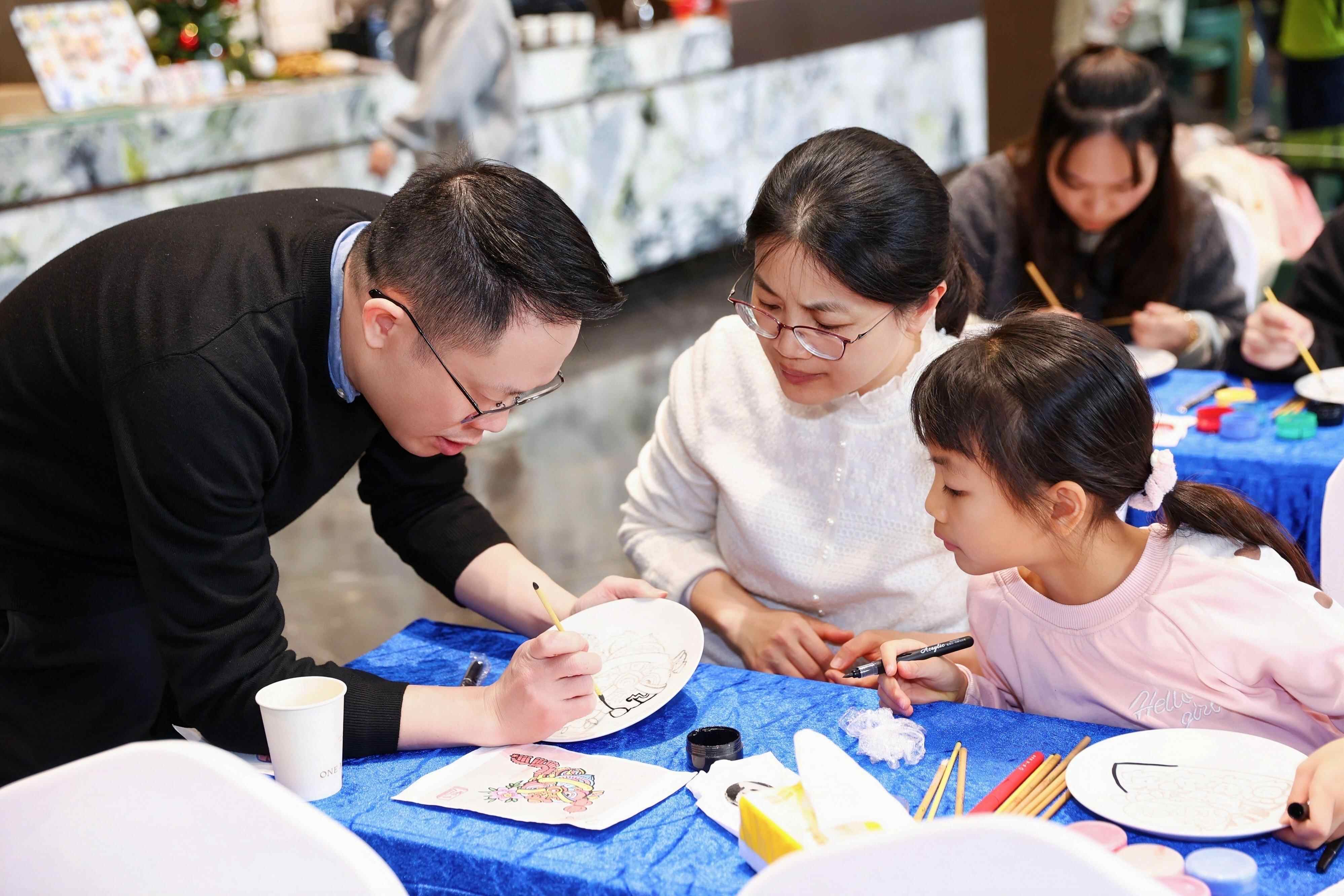 社区居民王女士带着6岁的女儿一起体验在瓷盘上进行彩绘的乐趣。“孩子从小就喜欢画画,但像这样在陶瓷上绘画的经历还是第一次。有机会让孩子零距离感受传统技艺的魅力,对培养她的审美素养很有帮助-。”