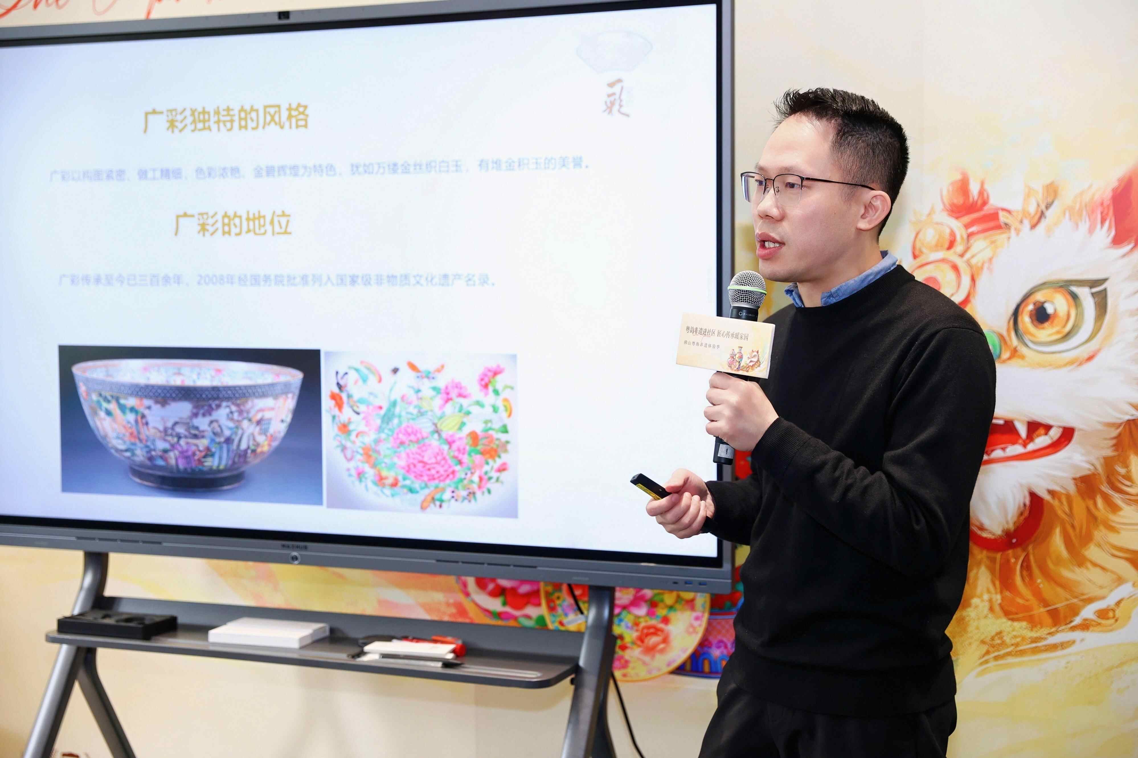 活动现场设置“广彩非遗小课堂”。周承杰详细讲述了广彩的历史渊源,“广彩的诞生与清代中外贸易的繁荣紧密相连”。