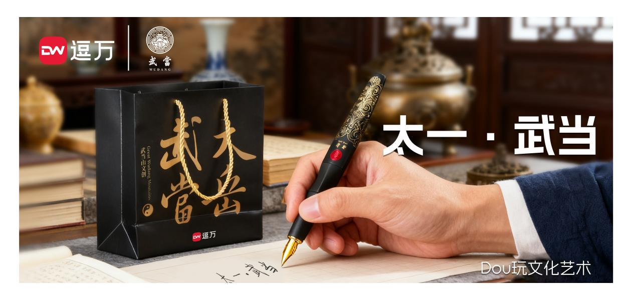 基于逗万太一钢笔的突破性设计=,逗万太一・武当联名款进一步将文化内涵与工艺美学推向新高度。作为拥有武当官方正版授权的文创珍品,该产品深度绑定武当“武术发源地、道教名山”的核心IP,将武当的深邃底蕴融入设计细节,成为道教文化爱好者的收藏佳品。