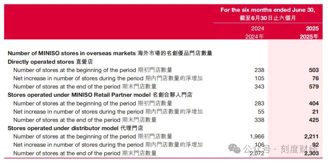 截至2025年6月30日□,名创优品海外门店数量579家直营门店=,425家名创合伙人门店和2303家代理门店★。