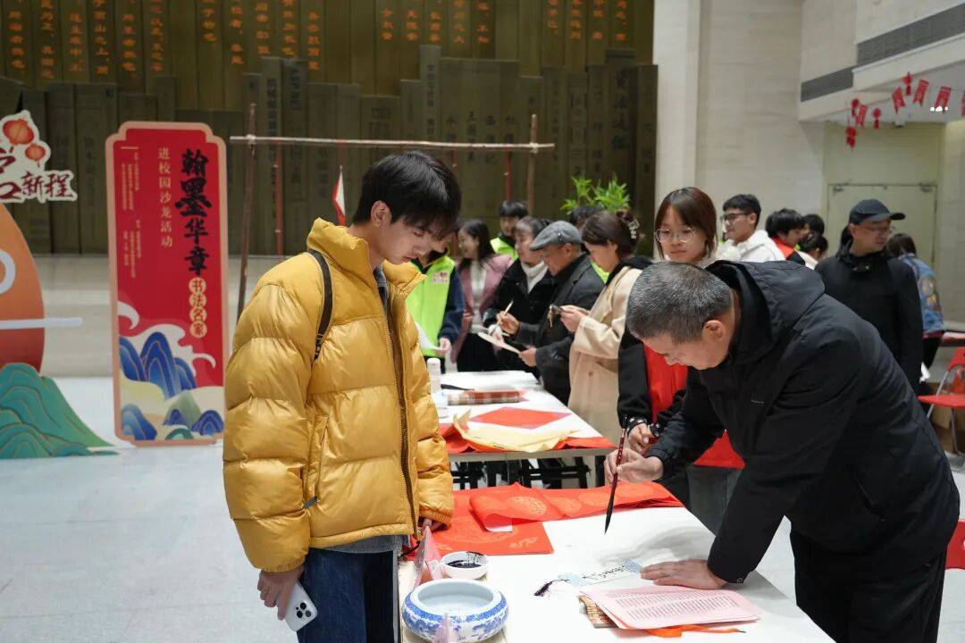 近日,沙洲职业工学院举办第二届“乐韵墨香迎新春 奋楫扬帆启新程”新年音乐会暨书法名家进校园活动▷。在学校图书馆,书法名家代表挥毫泼墨,一副副寓意吉祥的春联、一个个饱含祝福的“福”字跃然纸上,引得师生们纷纷驻足观赏。不少师生拿起毛笔,亲身体验春联和福字创作。新年音乐会节目内容丰富、形式多样□▪,为师生带来了一场视听盛宴。