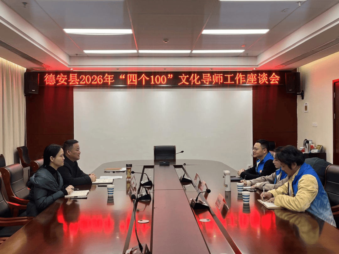 2026年1月7日上午,德安县召开2026年“四个100▼•◇”文化导师工作座谈会,全面复盘2025年文化导师下乡工作成效●…☆,科学部署2026年重点工作任务,凝聚文化导师力量★••,赋能德安文化建设高质量发展。