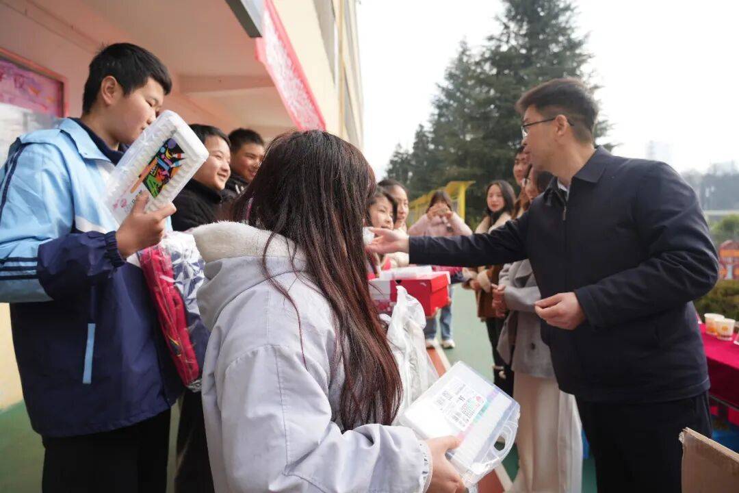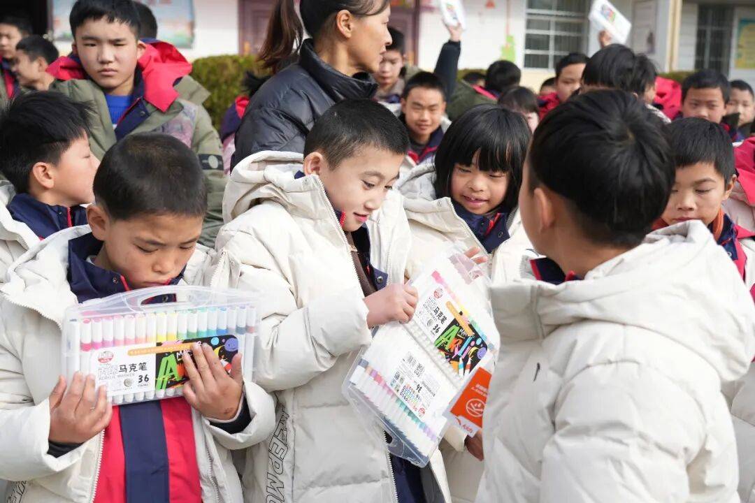 捐赠现场=■,工作人员与企业代表将物资一一分发到孩子手中。拿到水彩笔,换上运动鞋•■,孩子们心中充满了温暖▽。