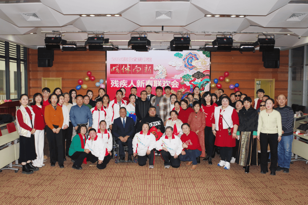 2026年腊八佳节,河北省图书馆精心策划举办的“暖伴向新”残疾人新春联欢会,在馆内多功能厅温馨启幕。河北省盲人协会主席常东亮、聋人协会主席郑杰、肢残人协会主席甄洪涛应邀出席,与残疾读者、助残志愿者及图书馆馆员欢聚一堂,共沐书香,喜迎新春。