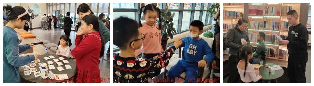 民俗讲解过后,五大自由闯关环节同步开启。小朋友们牵着家长的手,有序奔赴各个点位,沉浸式开启欢乐挑战。若闯关券不足,还可向小宁老师发起答题挑战补充,在趣味互动中收获更多惊喜。手势舞点位上,大家跟着节奏舒展肢体,将腊八习俗融入灵动舞姿;记忆与反应力比拼中,孩子们全神贯注、奋勇争先;食材灯谜与趣味数学题点位前,大小读者并肩思考、互帮互助,在协作中攻克难题,全程秩序井然、暖意融融,每一处都洋溢着亲子间的默契与闯关的喜悦。