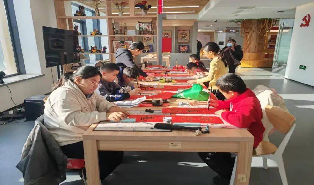 与此同时,一群小学生书法爱好者也登上“舞台”,他们手持毛笔,认真书写春联,稚嫩的笔触中透露出对传统文化的热爱。尽管字迹尚显青涩,但一撇一捺间尽显童真与用心,引得现场掌声不断。